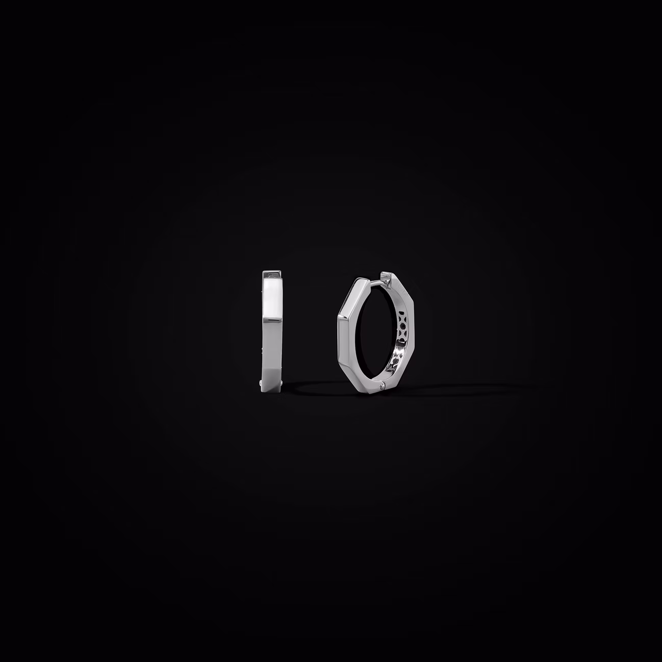Ці елегантні сережки Ottagono у розмірі S втілюють гармонію чистих ліній і геометричної довершеності. Фірмова восьмигранна форма бренду перетворюється на витончений акцент, який делікатно підкреслює вухо та додає образу стриманої розкоші. Акуратна застібка-монтажа забезпечує зручність і надійність, а перфорована тильна частина додає прикрасі вишуканої легкості та характерного ювелірного шарму.