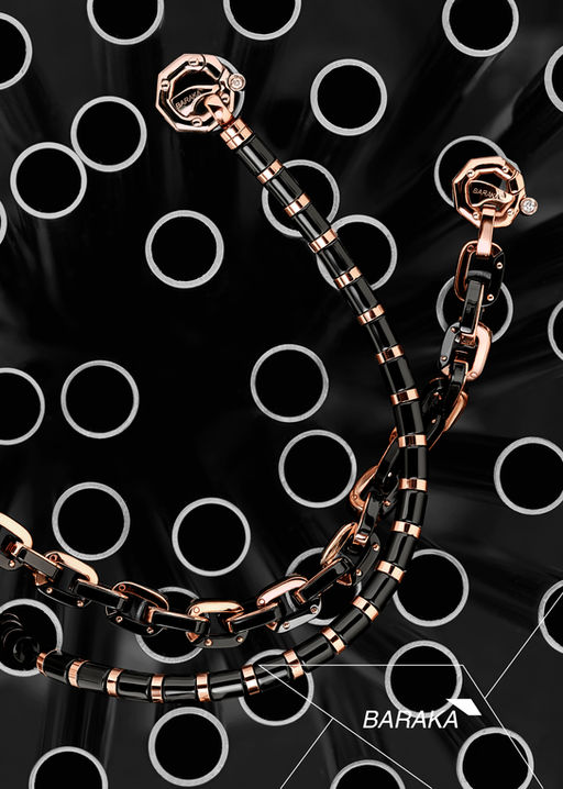 Barakà поєднує дорогоцінні метали з високотехнологічними матеріалами, створюючи вивірений чоловічий стиль. У виробах відчутні конструктивність і точність: геометрія, надійні з’єднання, продумана ергономіка. Комбінації золота 18K з карбоном, керамікою чи сталлю формують сучасний, стриманий силует. Прикраси Barakà доречні в діловому та повсякденному вбранні, підкреслюють дисципліну та вимогливість до деталей.