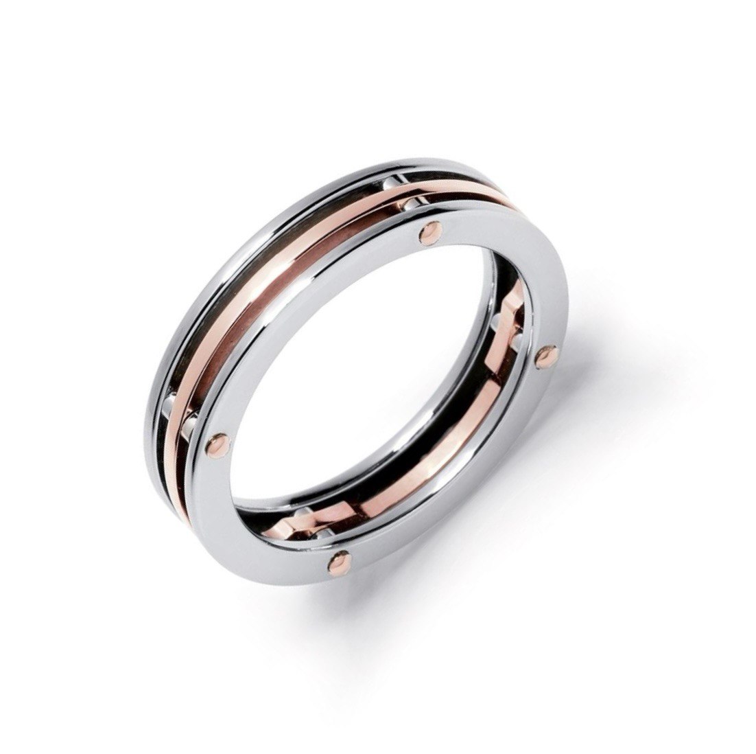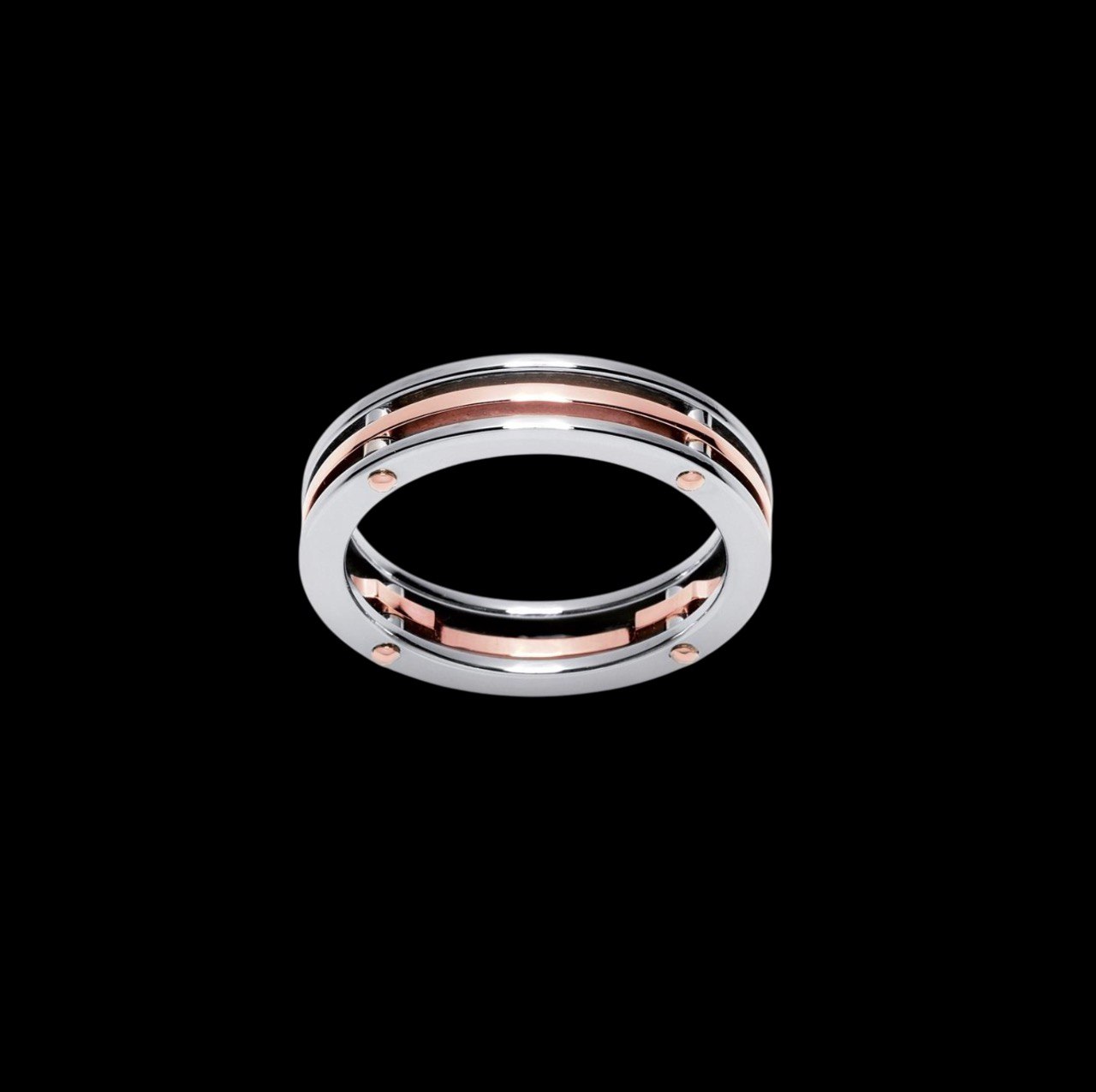 Чоловіча каблучка Baraka Uomo виконана з рожевого золота 750‰ (18 карат) у поєднанні з нержавіючою гіпоалергенною сталлю, що забезпечує ідеальний баланс форми та стилю. Динаміка і модерн — основні цінності цієї чоловічої каблучки з виразним стилем. Знакове поєднання двох кольорів переосмислено через контраст між 18-каратним рожевим золотом і сталлю 316L. Компанія Baraka завжди професіонально і прискіпливо підходить до виготовлення своїх прикрас, тож будьте певні, що придбавши ці прикраси ви станете щасливим власником виробів неперевершеної якості і абсолютної ювелірної майстерності, що виготовлені в Італії.