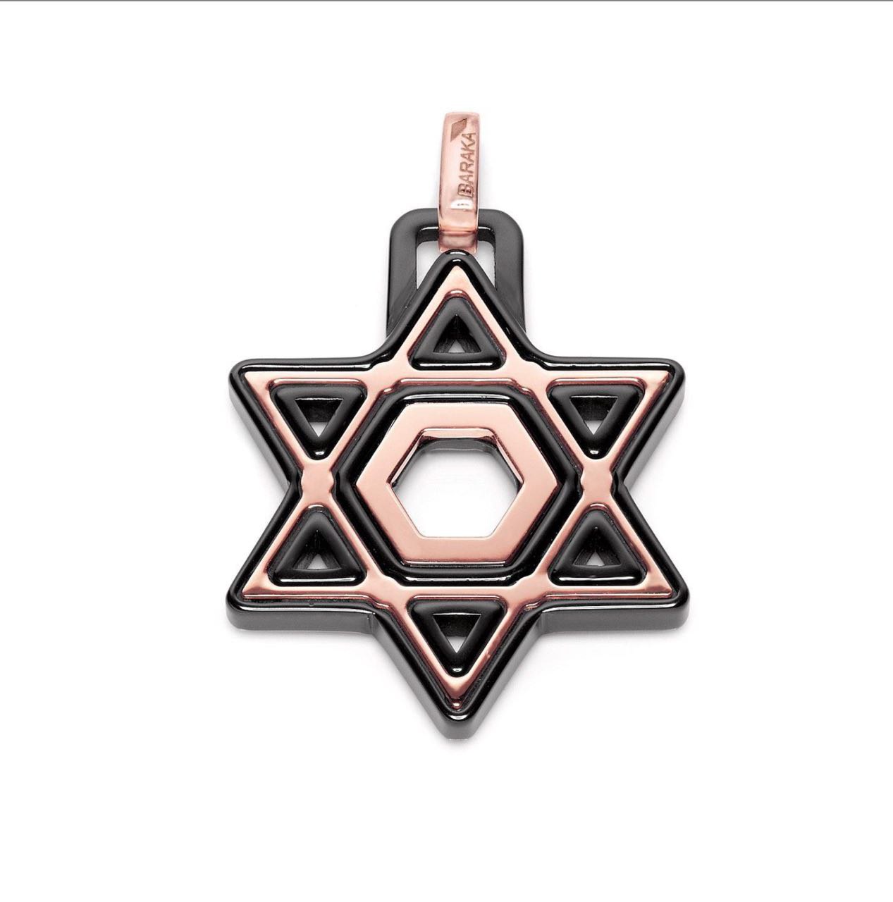 Кулон у формі зірки Давида, виготовлений з рожевого золота 750‰ та чорної кераміки high-tech.