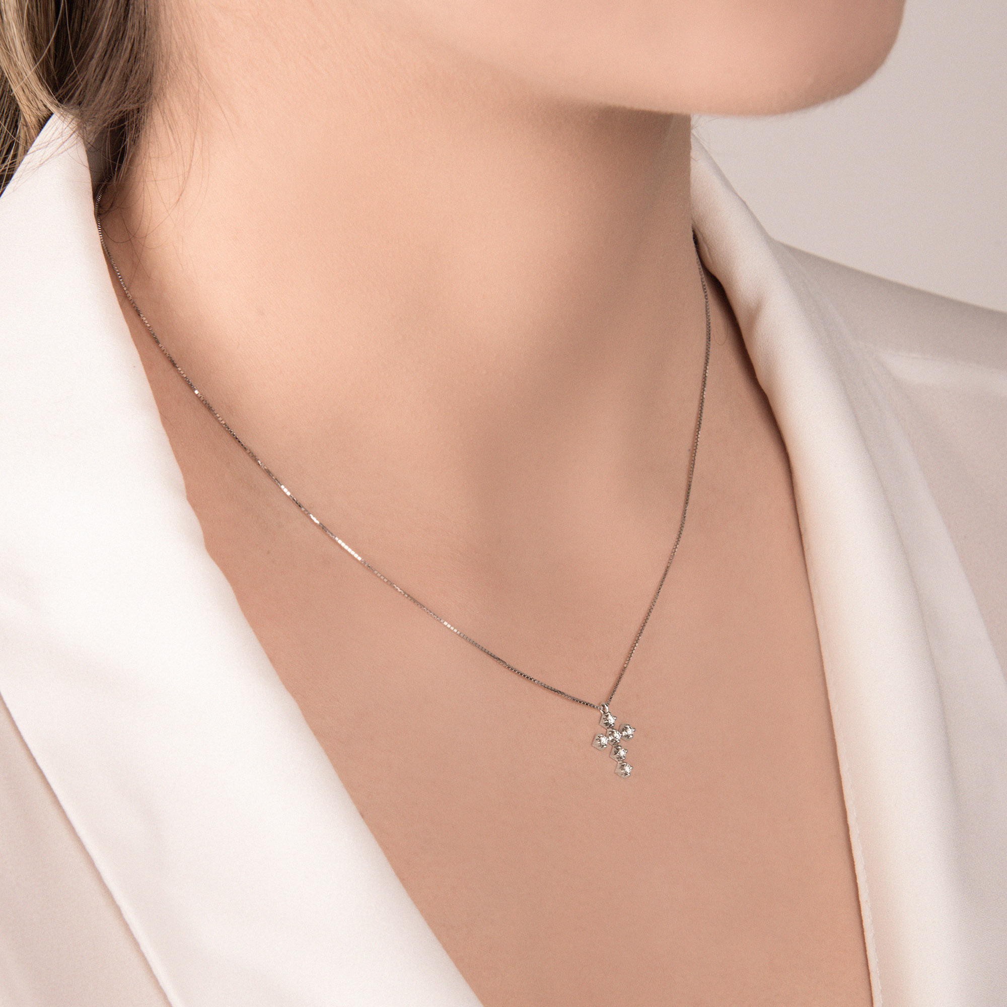 Діаманти загальною вагою 0,10 карата додають хресту блиску й витонченості, роблячи його ідеальним вибором для щоденного носіння або як особливий подарунок із глибоким змістом.